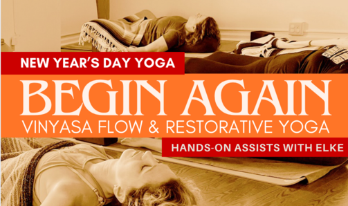 Enjoy a warm flow; moving with the breath and music. Followed by restorative postures for clarity and renewed intentions. Breathe away the past and gain clarity about what's next. A sweet class to lift you gently into the hands of 2026. 19 student limit. Led by Elke. Class cards apply. $20 drop in.