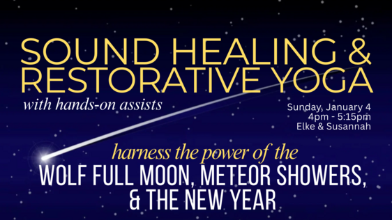 Join Elke & Susannah for the vibration of Crystal Bowls paired with profoundly restorative postures. Begin with a brief gentle warm up, followed by yin and restorative postures; ending in a supported heart opened savasana to receive energetic touch from Elke (optional).