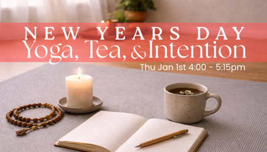 Enjoy a ritual of tea, gentle yoga, and meditation to pause, get quiet and profoundly clear about 2026. Arrive any time after 3:30pm to set up your space and enjoy some tea and community; bring a journal and pen.